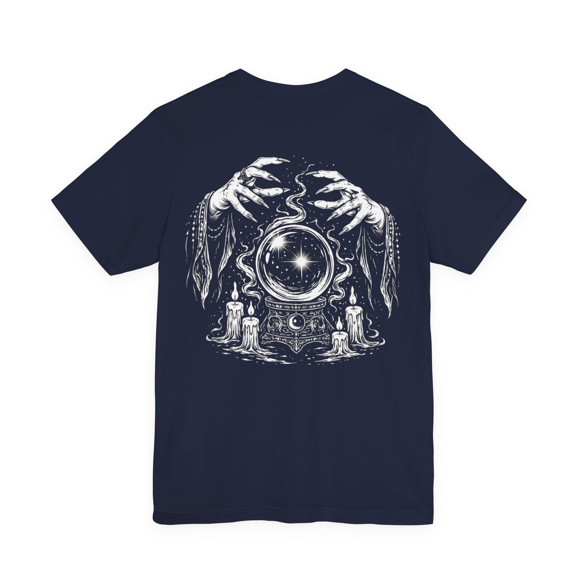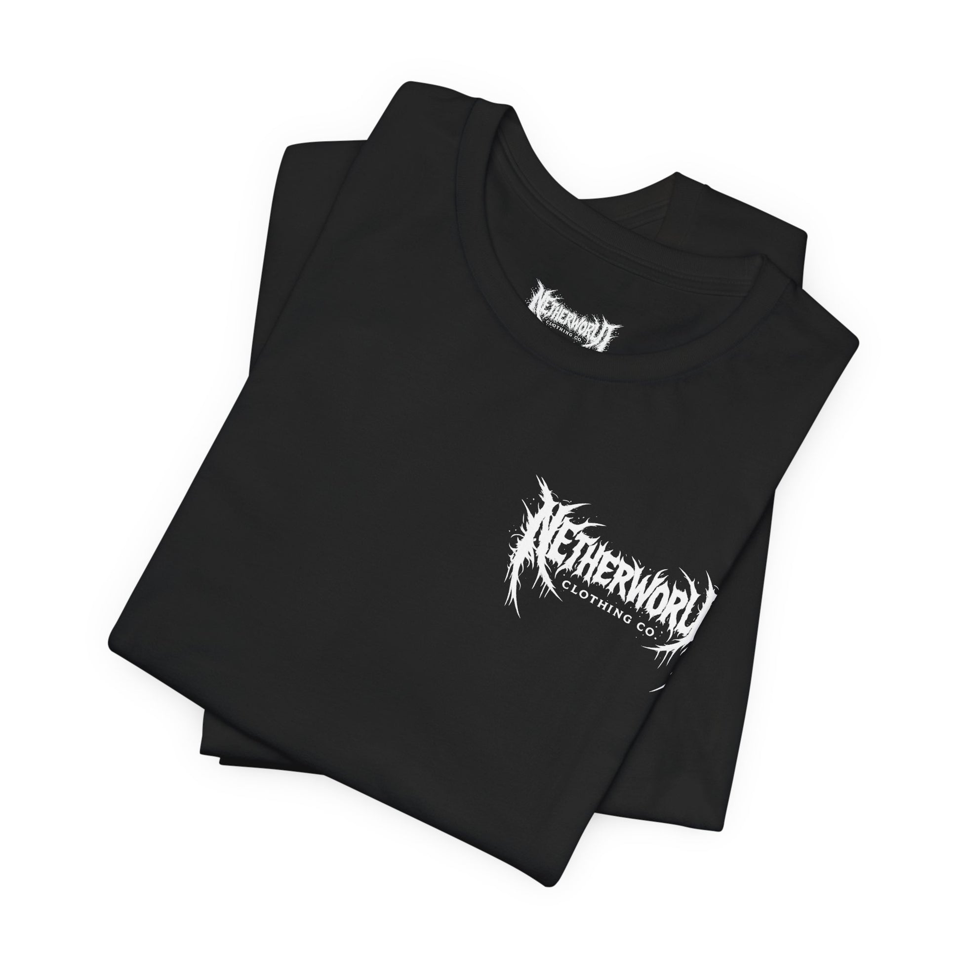 Lightweight cotton, heavy intent. The Netherworld Clothing Co. logo on the front and the 'Veil of the Oracle' on the back. Wear it to stake a claim on late-night walks, shows, or as a statement layer under a worn jacket. The breathable Airlume cotton keeps the shirt cool while the ribbed crew neck and shoulder tape hold the shape through repeat wears.